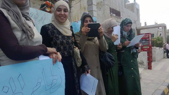 و تخللت الوقفة التي رفع فيها المعلمون الكثير من الشعارات المعبرة عن رفضهم لنظام الخدمة توزيع نشرات توضح التعديلات المقترحة من النقابة لبعض مواد النظام المجحفة بحق المعلمين.